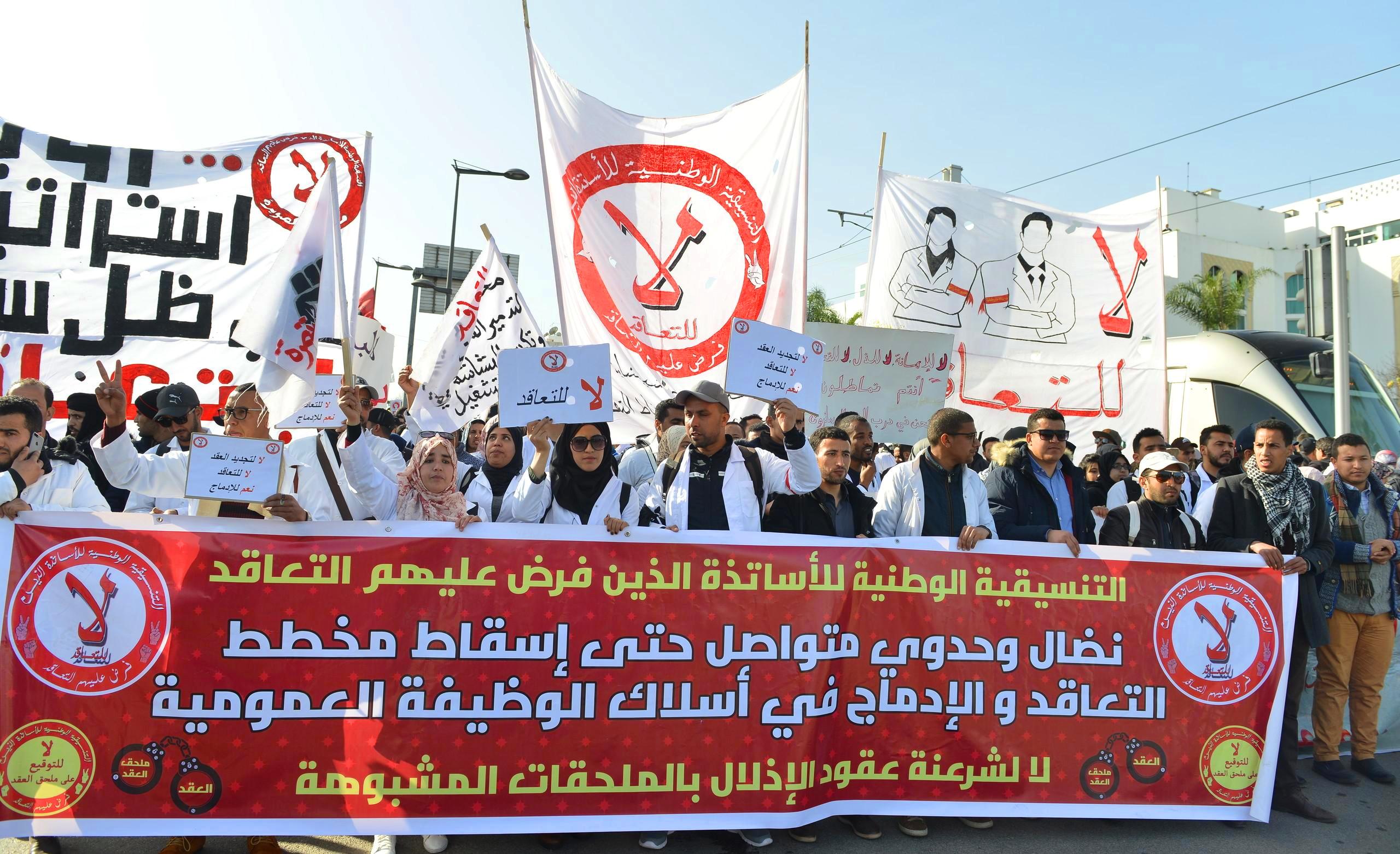 دعا التنسيق النقابي المكون من النقابة الوطنية للتعليم (CDT)، والجامعة الحرة للتعليم (UGTM)، النقابة الوطنية للتعليم (FDT)، والجامعة الوطنية للتعليم (UMT)، والجامعة الوطنية للتعليم (FNE) إلى المساهمة في إنجاح المحطة الاحتجاجية ل "التنسيقية الوطنية للأساتذة الذين فُرض عليهم التعاقد"، المتعلق بالإنزال الوطني بالرباط أيام الإثنين والثلاثاء والأربعاء 8 و9 و10 أبريل الجاري. وطالب التنسيق النقابي في بيان توصلت “العمق” بنسخة منه، بتسريح الأجور الموقوفة وبإرجاع “الأموال المقرصنة من أجور المضربين بشكل غير قانوني، في غياب قانون تنظيمي”، معلنا شجبه “استمرار الحكومة في تأجيج الوضع التعليمي من خلال إجراءاتها التي لن تثني نساء ورجال التعليم على المشاركة في مختلف الاحتجاجات”. وأعلنت النقابات الخمس ضمن بيانها عن تشبثها “بعدالة ضريبية ترفع الحيف عن الموظفين العموميين بصفة عامة ونساء ورجال التعليم خصوصا وتطالب بزيادة في الأجور لرد الاعتبار لكرامة نساء ورجال التعليم”، مؤكدة على أنها “لن تدخر جهدا في الدفاع المستميت عن كل نساء ورجال التعليم ضد مختلف الإجراءات التعسفية”. وقررت التنظيمات النقابية مراسلة وزير التربية الوطنية ورئيس الحكومة لتجديد الدعوة لفتح الحوار مع النقابات التعليمية حول جميع ملفات الشغيلة، بما فيها ملف “المفروض عليهم التعاقد” وبحضور ممثليهم لجعل حد للنزاعات القائمة وإنقاذ ما يمكن إنقاذه، فضلا عن مراسلتها منظمة العمل الدولية واليونسكو والمنظمات النقابية الدولية حول تردي أوضاع التعليم بالمغرب والحريات النقابية التعليمية وغياب التفاوض الجاد المسبب في الإضرابات التعليمية المتتالية. وجدد التنسيق الخماسي دعوته لنساء ورجال التعليم إلى الاستمرار في رفض كل الإجراءات المتخذة من طرف الوزارة والاكاديميات والمديريات الإقليمية، التي تهدف كسر إضراب الأساتذة المفروض عليهم التعاقد ورفض حصص ما سمي زورا بالدعم خلال العطلة، مهيبا بنساء ورجال التعليم إلى الإستمرار في التعبئة لتنزيل البرنامج النضالي الذي ستعلن عنها قريبا، وفق البلاغ. 1. وسوم 2. #الإنزال الوطني 3. #التنسيق النقابي 4. #الزيادة في الاجور 5. #تردي التعليم 6. #رجال ونساء التعليم