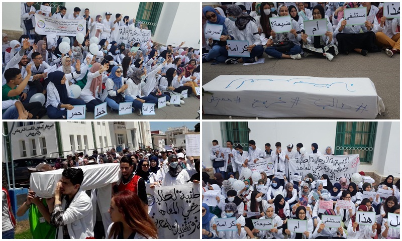 تظاهر العشرات من طلبة وخريجي المعهد العالي لمهن التمريض وتقنيات الصحة بتطوان، في وقفة احتجاجية أمام مقر المندوبية الإقليمية لوزارة الصحة داخل المستشفى الإقليمي سانية الرمل بتطوان، احتجاجا على اعتماد سياسة التعاقد في قطاع الصحة، داعين الوزير أنس الدكالي إلى وقف “الحلول الترقيعية”. الوقفة التي دعت إليها التنسيقية المحلية للطلبة والخريجين والممرضين، شارك خلالها المحتجون في تشييع جنازة رمزية لمهنة التمريض، حاملين صندوقا كرتونيا يجسد بنظرهم وفاة كرامة الممرضين بالمغرب، رافعين لافتة كُتب عليها: “هل هذا مستشفى أم ضيعة؟” وفق تعبيرهم. وجاءت الوقفة بعد سلسلة من الاحتجاجات التي خاضها طلبة وخريجو معهد التمريض بتطوان طيلة الأسابيع الماضية، رفضا لاعتماد نظام التعاقد بقطاع الصحة مع الجمعيات المدنية والجماعات الترابية، مطالبين بتوفير المناصب المالية الكافية لتوظيف الممرضين، مشددين على أن “كرامة الممرض خط أحمر”. الطالب الممرض محمد كروم، قال في تصريح لجريدة “العمق”، إن هذا النوع من التعاقد غير المباشر غير مقبول، مشيرا إلى أن تبرؤ وزير الصحة من هذا التعاقد ورميه الكرة بملعب وزارة الداخلية باعتباره الداعمة له، “دليل آخر على نهج وتطبيق سياسة التعاقد من طرف الحكومة”، لافتا إلى استمرار احتجاجاتهم حتى تحقيق ملفهم المطلبي. وأضاف بالقول: “نحن كتنسيقية محلية نستنكر بشدة هذا النوع من التعاقد ونرفضه جملة وتفصيلا، نظرا لتداعياته الكثيرة، أولها التأثير على المناصب المالية للخريجين الذي يُقدر عددهم حاليا ب5000 خريج عاطل، ونعتبره حلا ترقيعيا فقط، حيت يقدر الخصاص ب64000 منصب من أجل سد الخصاص المهول الذي يعرفه القطاع”. واعتبر المتحدث أن أبسط مثال على هذا هو “الغياب التام للأطر التمريضية بقسم القلب والشرايين في مستشفى سانية الرمل بتطوان”، مطالبا وزارة الصحة ب”الكف عن الحلول الترقيعية وسد الخصاص بإدماج جميع الخريجين المعطلين”، مجددا رفضه التام ل”سياسة التعاقد بجميع أنواعها وتفاصيلها، والتشبت بعدم دماج الخواص”. 1. التعاقد 2. التمريض 3. تطوان 4. طلبة 5. مستشفى سانية الرمل 6. وزارة الصحة