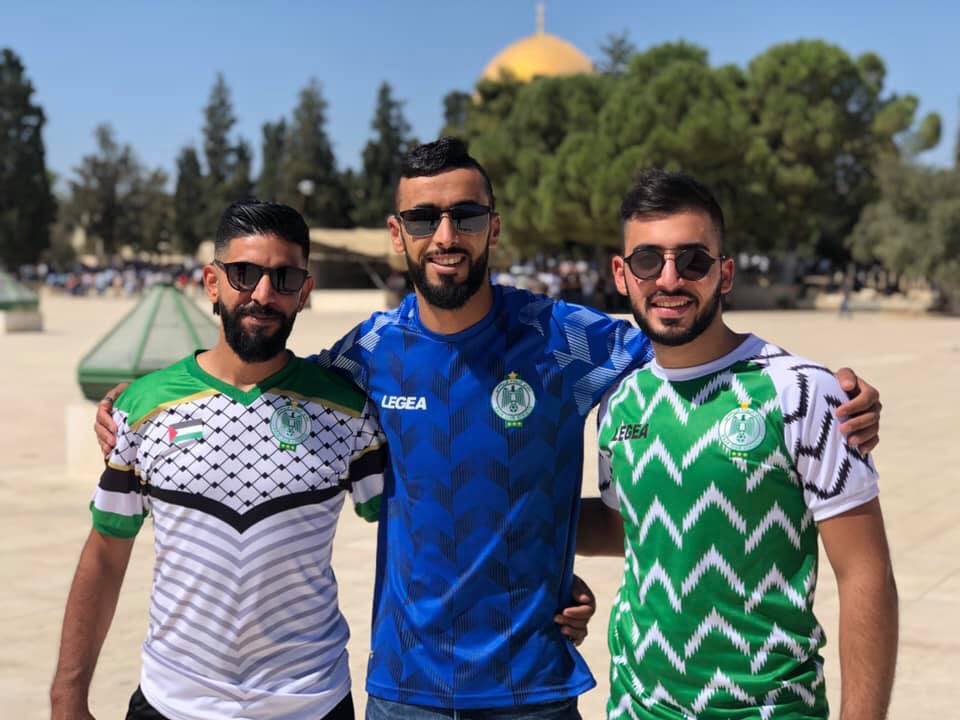 تناقل رواد مواقع التواصل الاجتماعي صورة لمصلين في باحة المسجد الأقصى يرتدون قميص نادي الرجاء البيضاوي موسوم بعبارة “رجاوي فلسطيني”، قبل مباراة إياب سدس عشر كأس محمد السادس للأندية الأبطال 2019. وكان نادي هلال القدس لقي ترحيبا كبيرا من طرف أنصار الرجاء البيضاوي خلال زيارته للمغرب برسم ذهاب سدس عشر كأس محمد السادس للاندية الأبطال 2019. وحقق فريق الرجاء الرياضي فوزا صغيراً أمام فريق هلال القدسالفلسطيني، بهدف نظيف سجله العميد محسن متولي في الدقيقة 12، من علامة الجزاء، وعرفت المباراة سيطرة واضحة للنسور دون ان تفسر عن جديد يذكر. يذكر أن مباراة الإياب بين الفريقين ستجري في الثالث من شهر أكتوبر على ملعب الشهيد فيصل الحسيني بمدينة القدس. 1. الرجاء 2. القدس 3. المغرب 4. جماهير 5. رجاوي فلسطيني 6. فلسطين