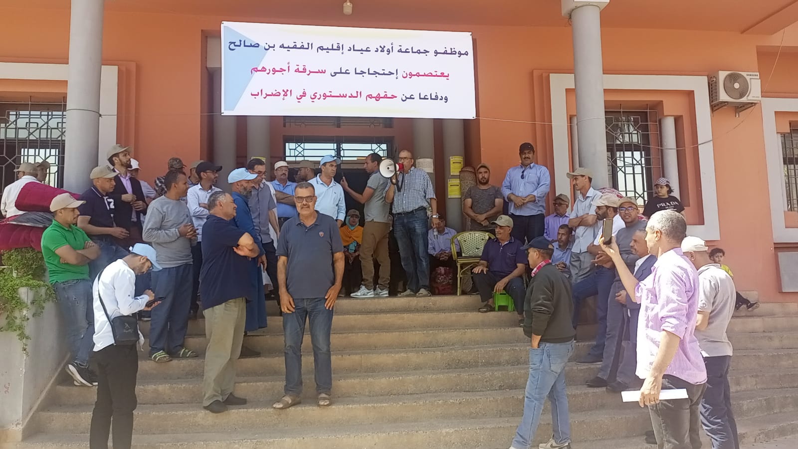 يواصل التنسيق النقابي الثنائي المكون من الجامعة الوطنية لموظفي الجماعات الترابية و التدبير المفوض (ا م ش) والنقابة الوطنية للجماعات الترابية و التدبير المفوض (ك د ش) بأولاد عياد، اعتصامه لليوم التاسع على التوالي داخل مقر الجماعة، احتجاجا على "إغلاق باب الحوار وعدم تدخل المسؤولين لحل المشاكل العالقة". وقال بيان للتنسيق النقابي إن الجمع العام الذي انعقد الاثنين الماضي من داخل المعتصم الذي يخوضه الموظفون على تعنت رئيس الجماعة واستعماله لجميع أساليب الترهيب والتخويف للموظفين واستعانته بالمفوضين والأعوان القضائيين عوض اللجوء إلى الحوار وحل كل المشاكل العالقة داخل الجماعة، وفق تعبير المصدر. ووقف البيان أيضا على "الصمت المطبق" للسلطات الإقليمية وتواطئها للإجهاز على حق الإضراب والتضييق على الحريات النقابية. وتوجهت النقابتان باعتذارهما لساكنة مدينة أولاد عياد عن هذه الوضعية الشاذة التي حرمت مجموعة من المرتفقين من قضاء مصالحهم الإدارية، مشيرتين إلى ان المسؤولية الكاملة يتحملها رئيس المجلس. واستنكرت الهيئتان "أساليب الضغط و التخويف" التي يمارسها عامل إقليم الفقيه بن صالح على رؤساء الجماعات وحثهم على الاقتطاع من أجور المضربين.