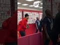 بنصغير يهدي قميصه بعد نهاية المباراة لأحد المؤثرين في المنطقة المختلطة الخاصة بالصحفيين